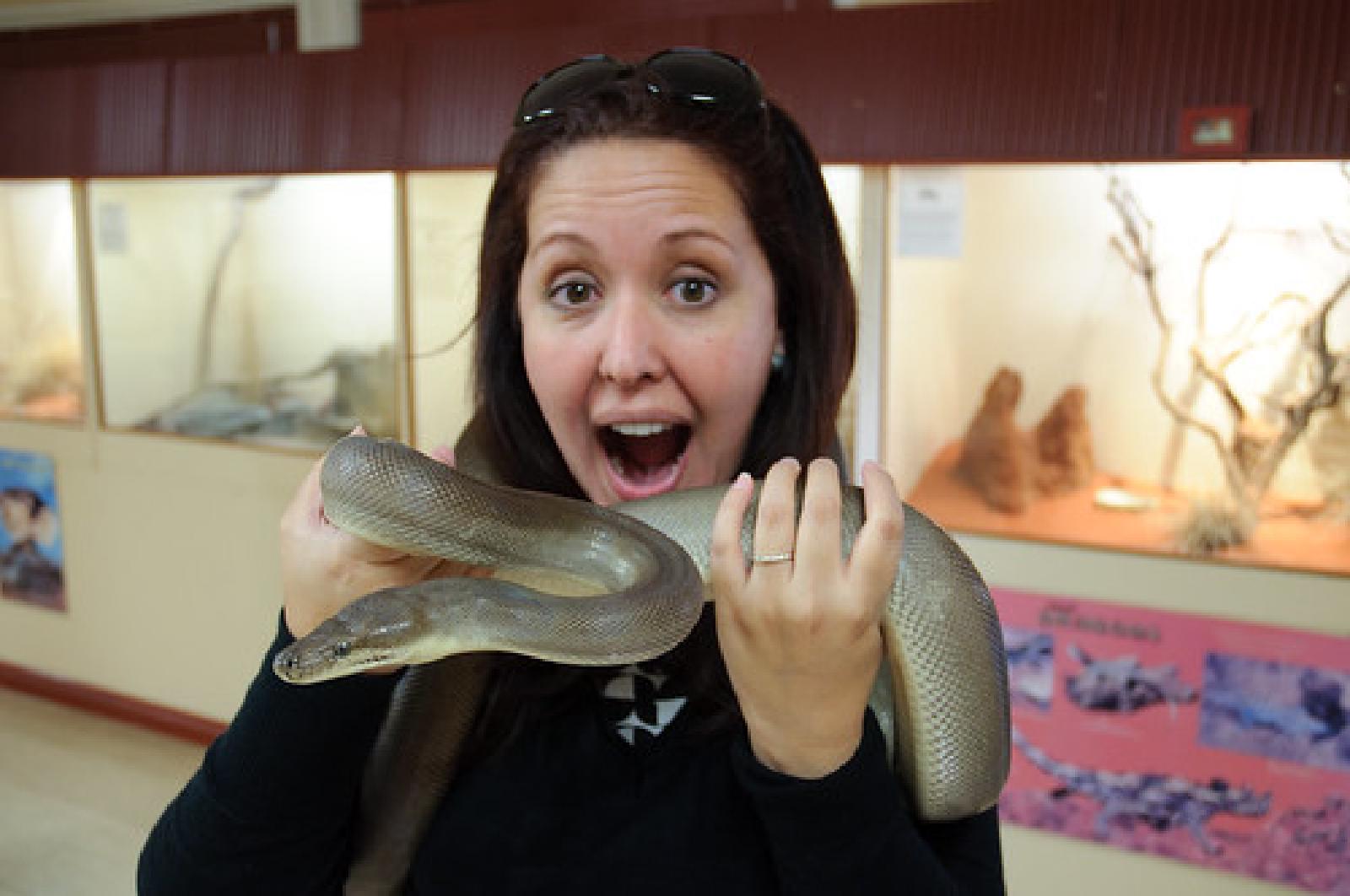 We then went to see the Alice Springs Reptile Centre, a quaint little place that allowed us to get up really close with some reptiles. It was pretty cool, and Adriana does what she always seems to do when holding a snake: making out she’s going to eat it.