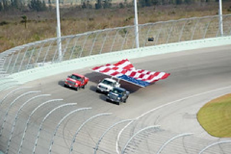 What I found amazing was the patriotism shown before the race started. Three trucks drove around the track with an American flag in tow and the crowd went absolutely mental with a deafening noise.
