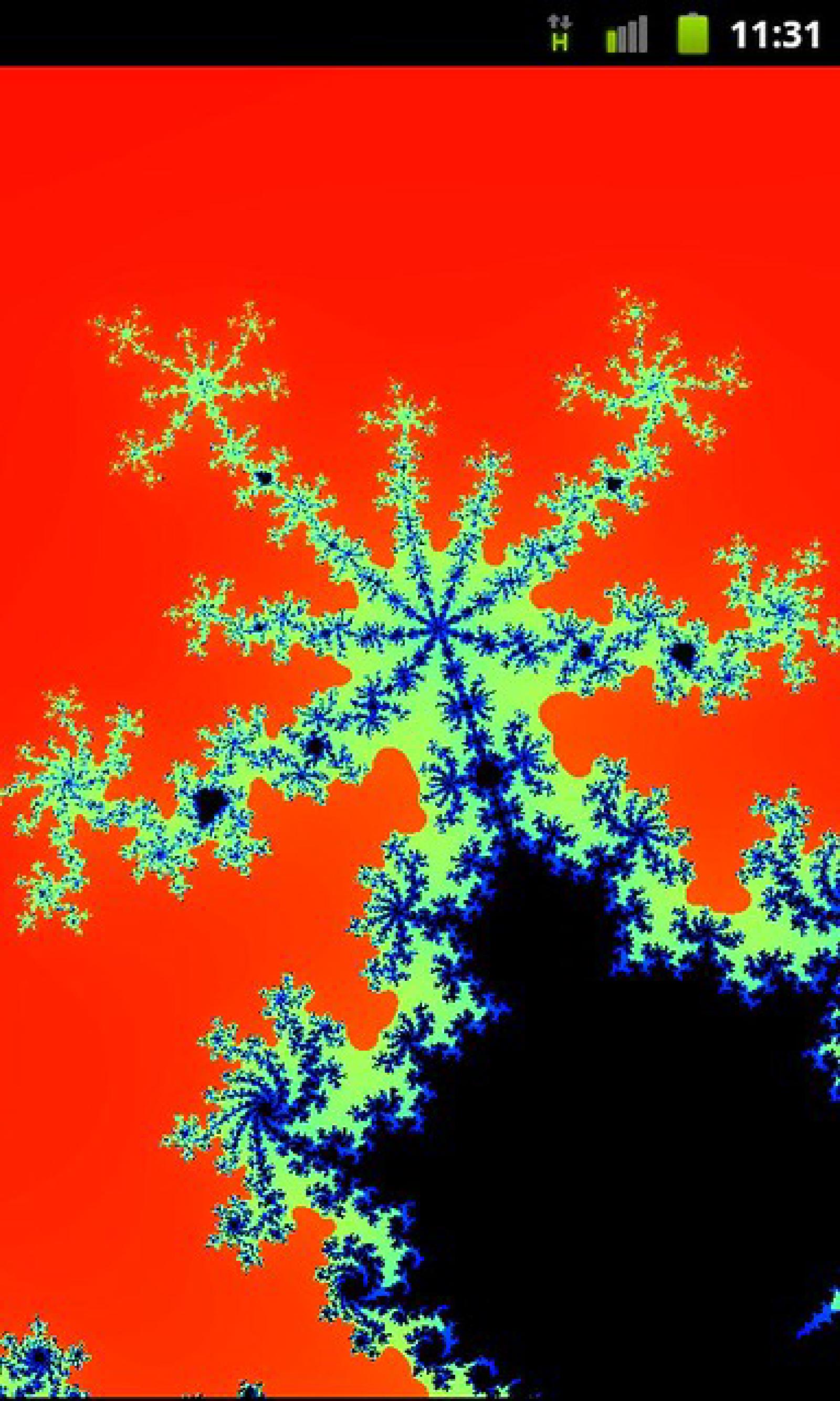 I created a list of features I wanted this thing to have, and along with some speed and user interface improvements, the big feature I added for this version was zoom. This is a screenshot of the app running on my phone, showing a zoomed-in portion of the Mandelbrot set: