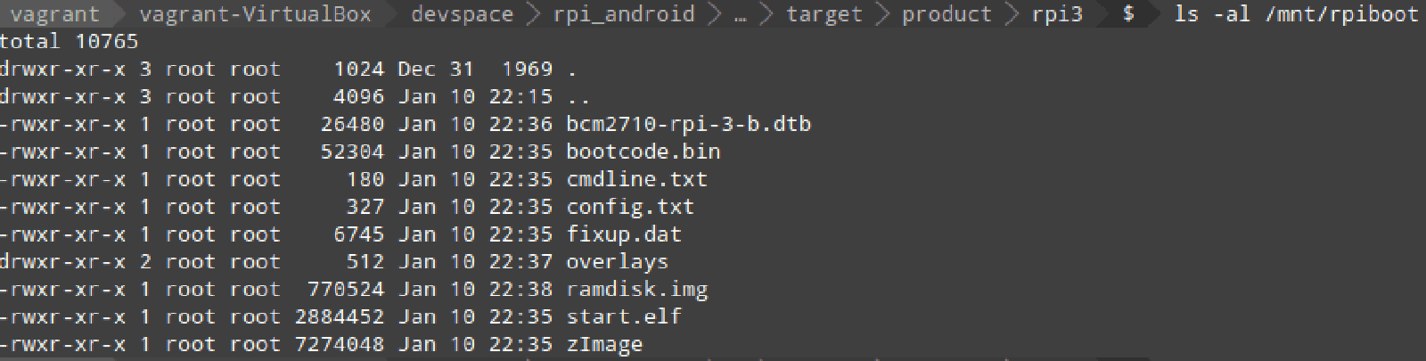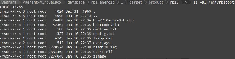 And then I followed all the commands for copying to the boot partition, the result of which looks like: